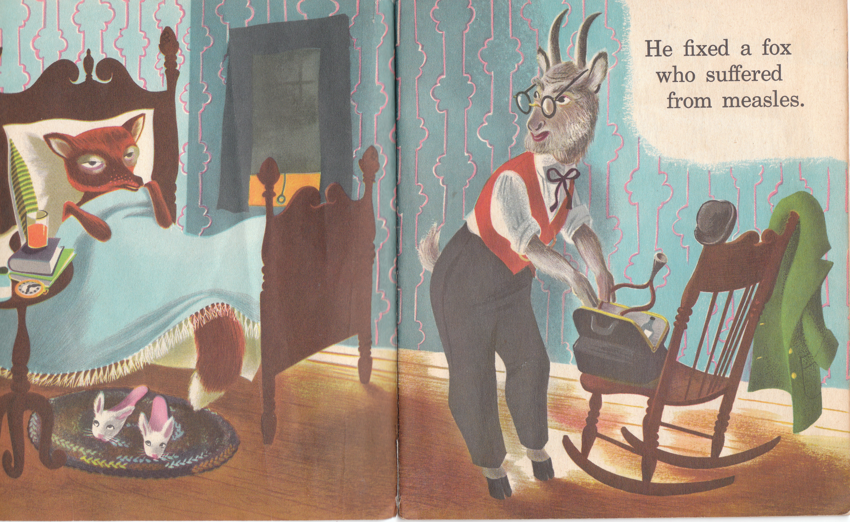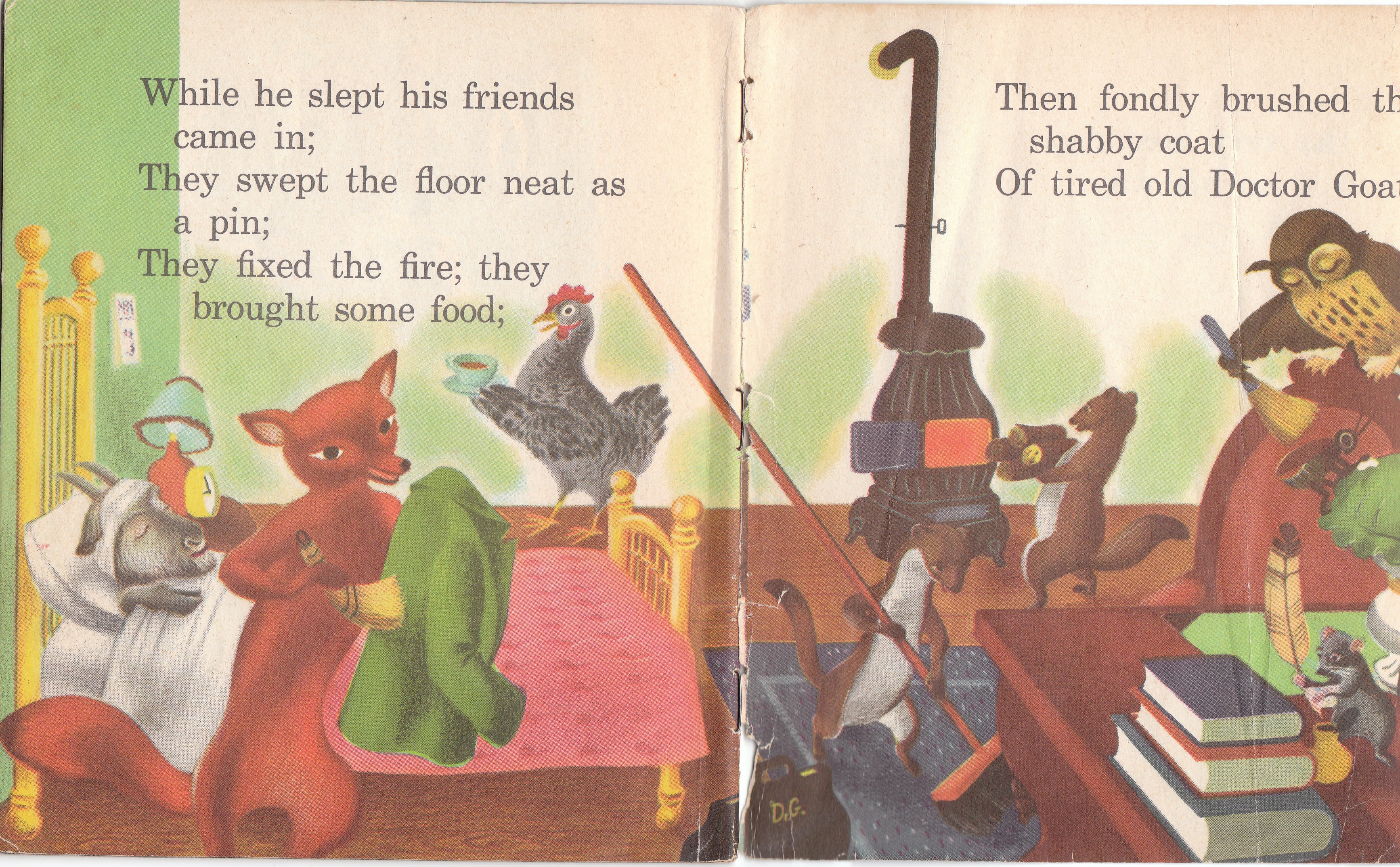 When Jimmy was a tiny boy he loved a story called “Zelda and Ivy” about two fox sisters, one naughty and one an unwitting victim of the naughty one. Jim and I read the thing to tatters and still refuse to give it away. Dr. Goat looks like he received lots of the same kind of love Zelda and Ivy did. Perhaps,if you think about it, Dr. Goat helped you heal, too. Hurray for Dr. Goat, indeed!