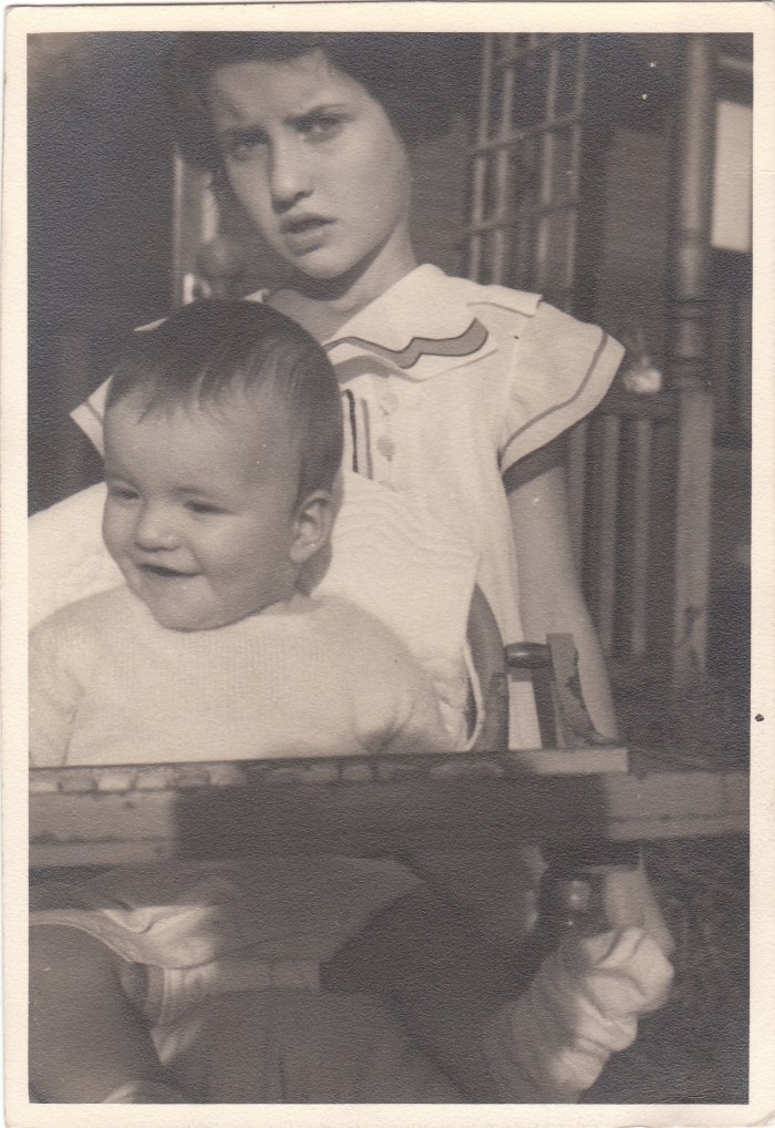 Daddy as a baby with his older sister, my Aunt Evie–