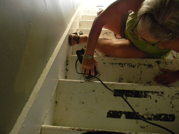 21. Way to show your staircase who’s boss, Kathy! I can’t believe you’re feeling well enough to use a power sander already. 🙂