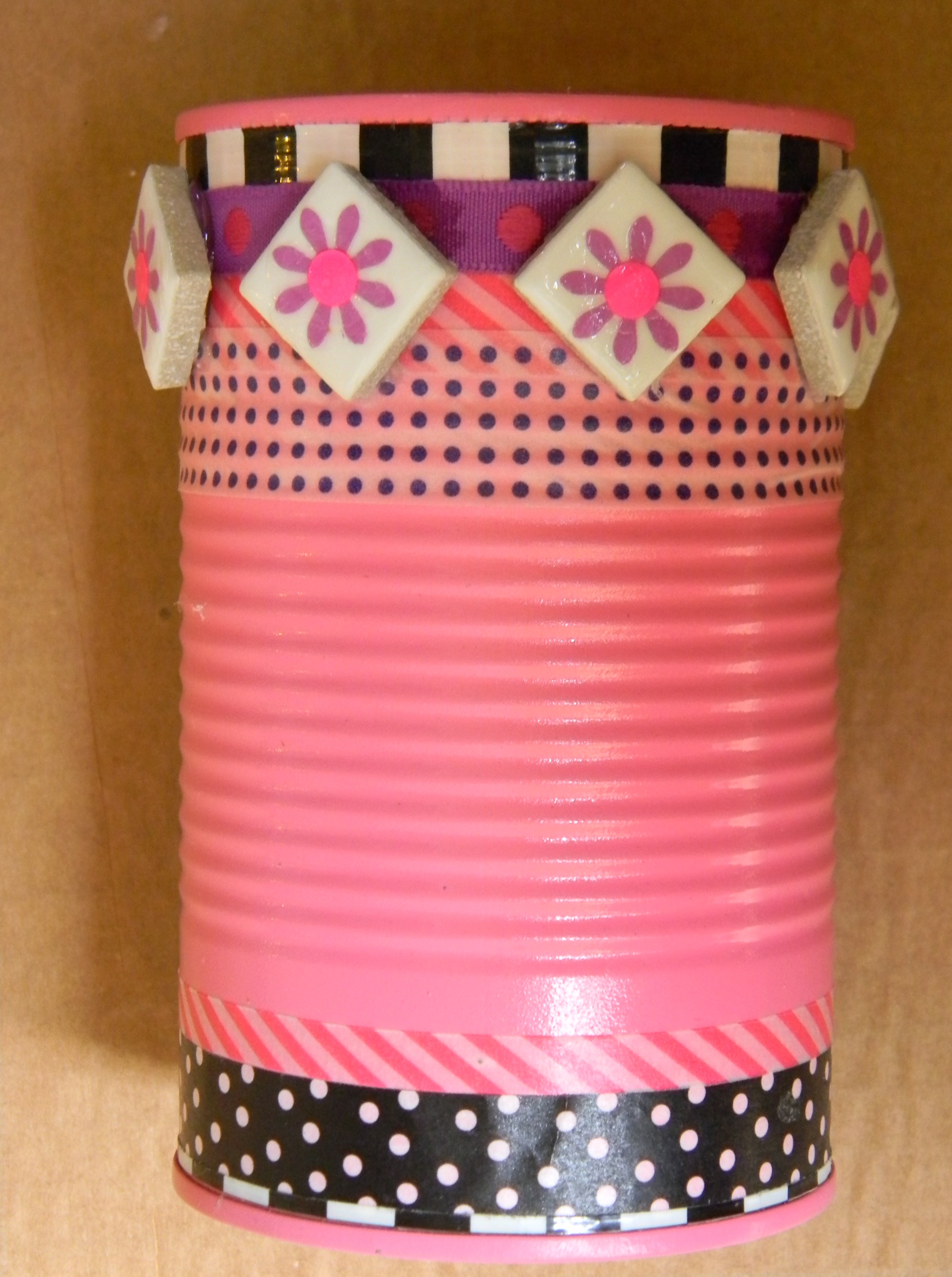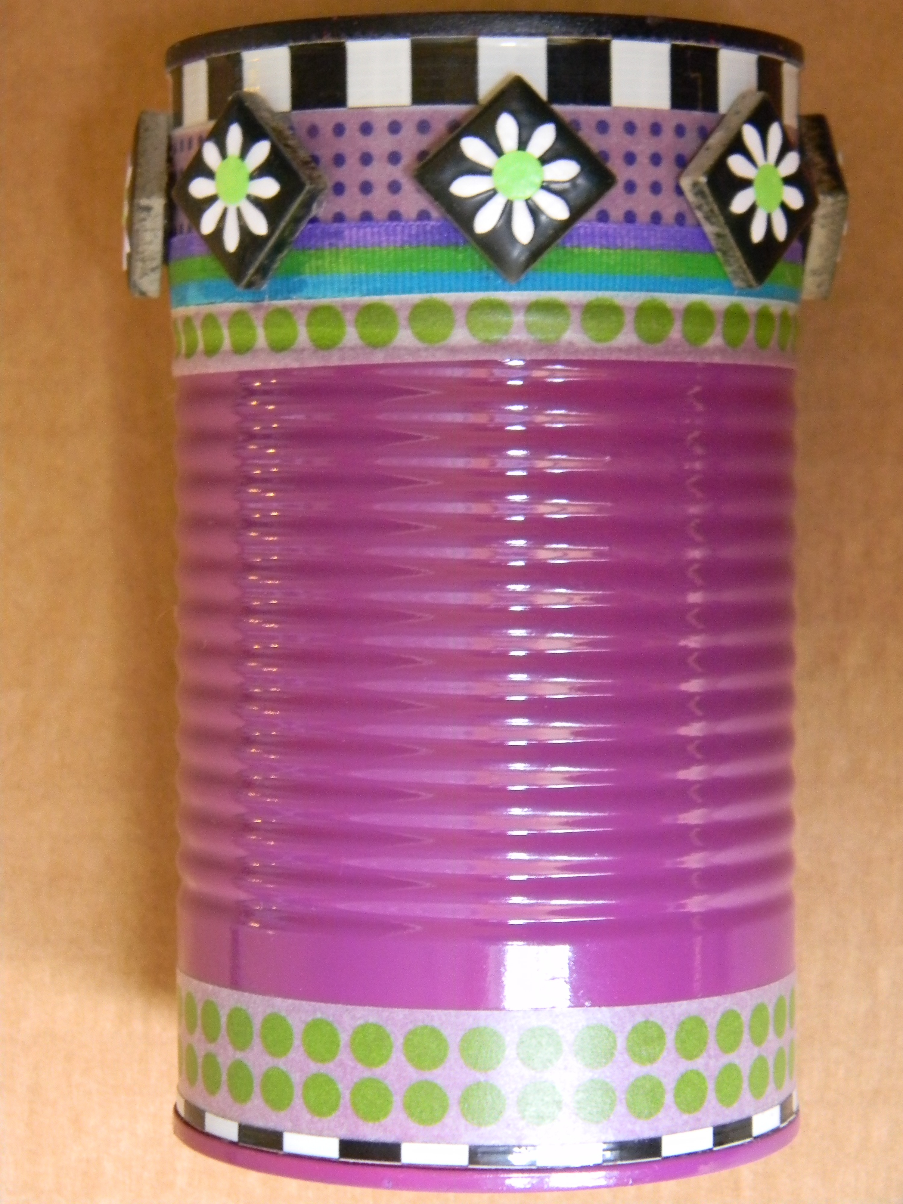 The first set of photos shows the containers I’ve created out of empty soup cans.  They can be used as vases, pencil holders, or anything else you might imagine.