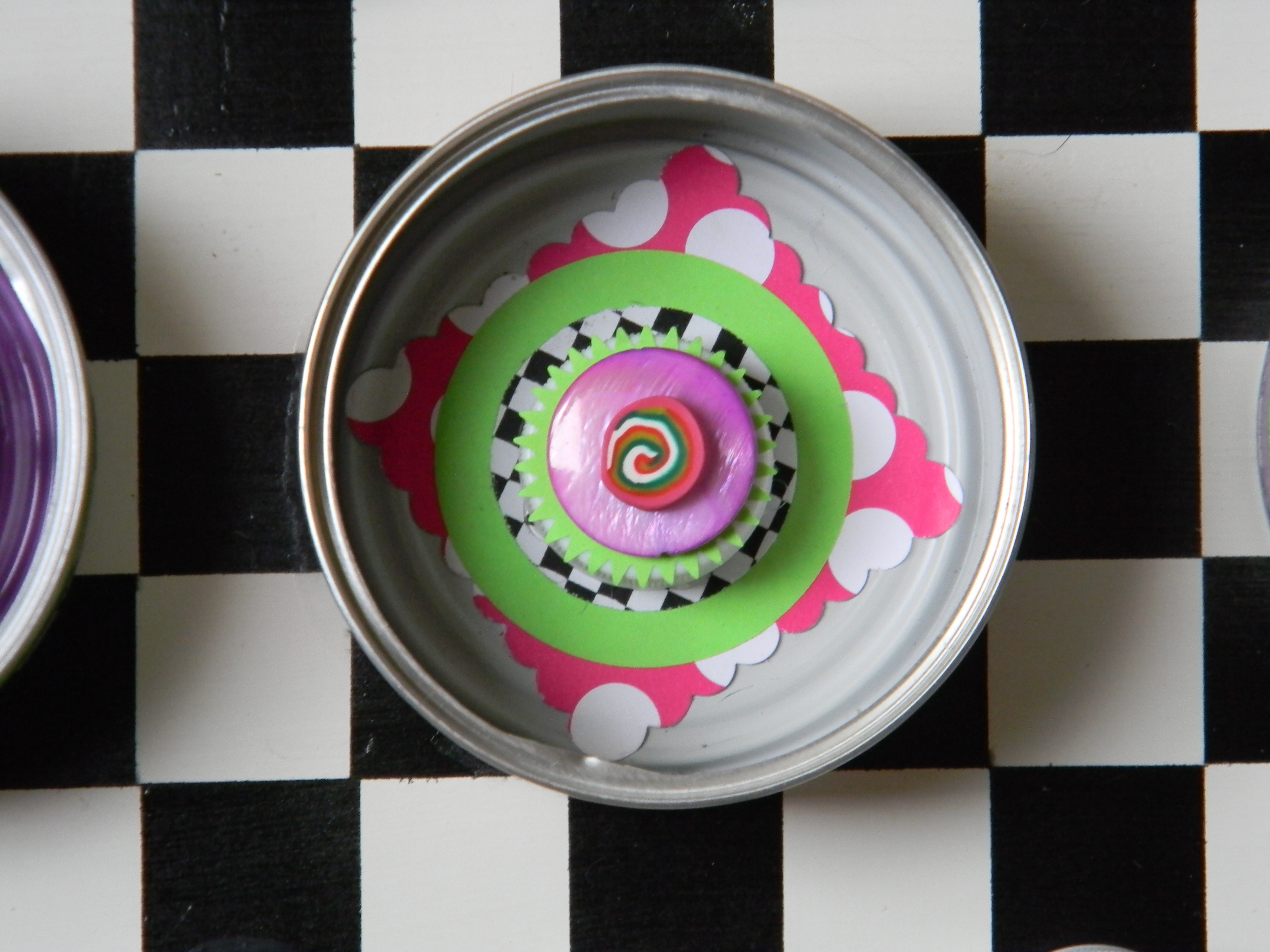 12. So, Kathy, how do I place an order? I love your wall art (fifth one down using cat food cans), and the last photo of the soup can/pencil holder. You are incredibly talented! What I love is how you see art in trash, and most of us see trash in trash. You have managed to turn it around into a thing of beauty. I love bold colors of any kind, which is why I love your work so much. One of my favorite colors is orange–but orange looks fab with hot pins, lime green, bright blues–you name it! I love purple, too!