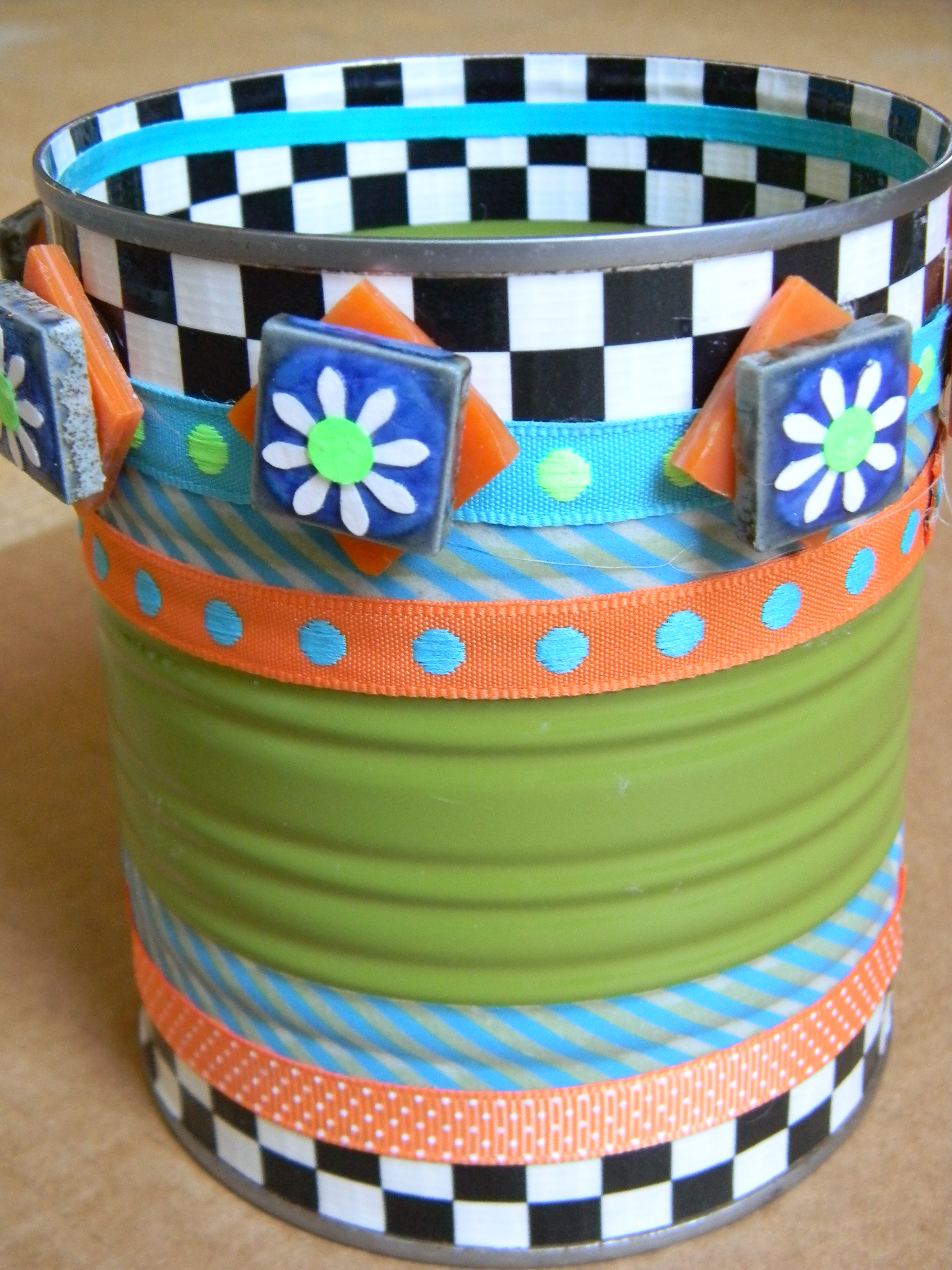 So I just love the color combination of the 5th can – the one with the green, orange and pale blue. It seems unexpected. I may have to steal that from you and use it in my bedroom somehow. 🙂