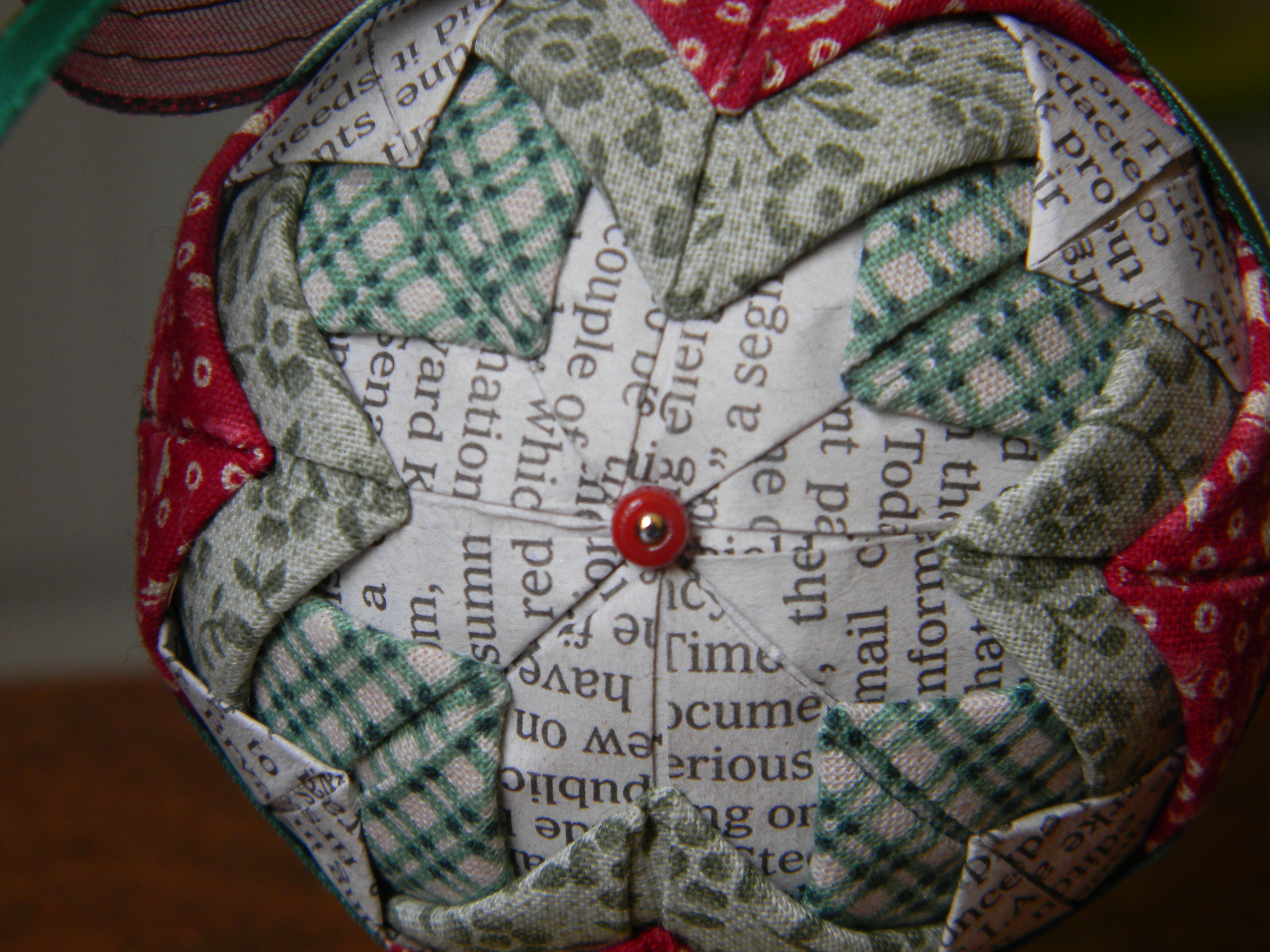 (Note: I would make a number of ornaments with fabric before proceeding to paper, which is more difficult to manage.)