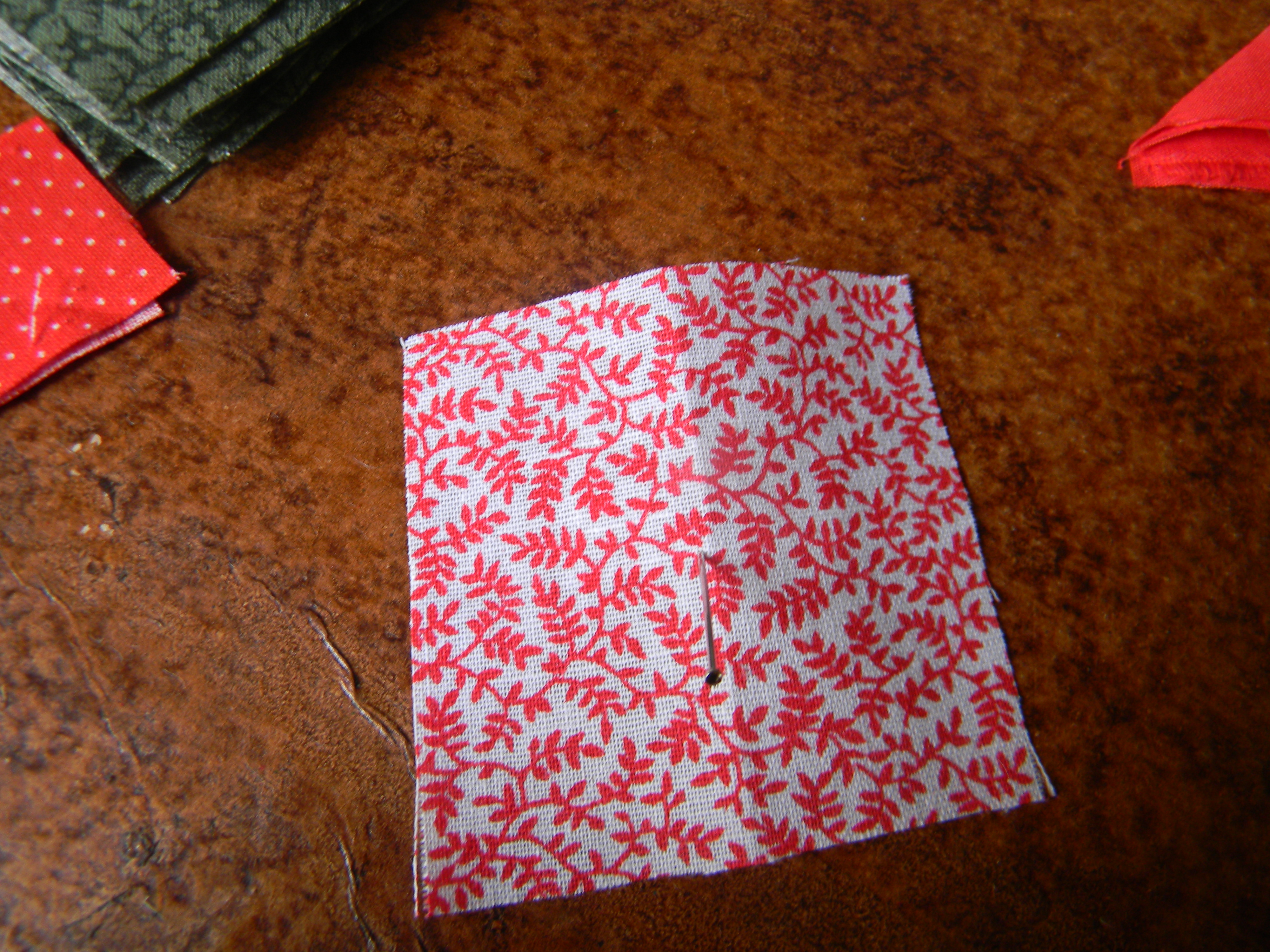 - Cut fabric and/or paper into 2 inch squares. You will need 40 squares per ornament.